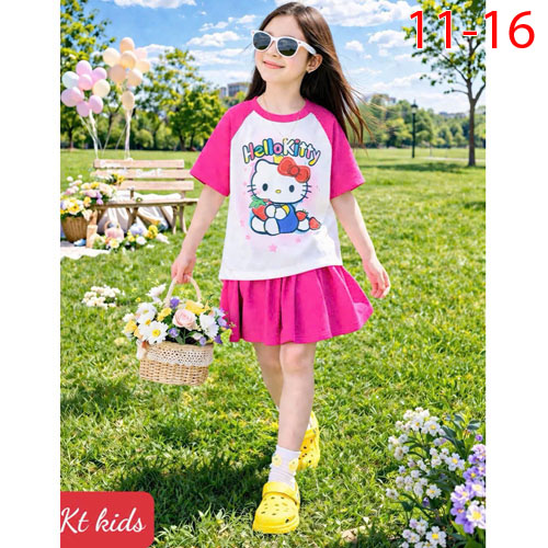 A509886 - Set váy xinh cho bé yêu thun cotton co giãn 4c in Kitty in cô bé chân váy xếp ly_Size 11-1