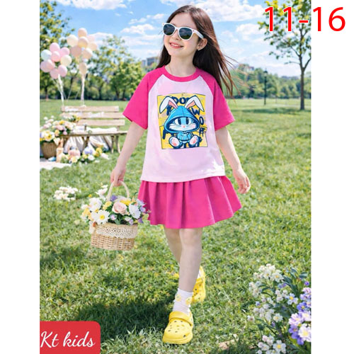 A509887 - Set váy xinh cho bé yêu thun cotton co giãn 4c in Kitty in cô bé chân váy xếp ly_Size 11-1