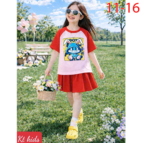 A509891 - Set váy xinh cho bé yêu thun cotton co giãn 4c in Kitty in cô bé chân váy xếp ly_Size 11-1