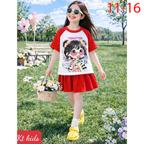 A509897 - Set váy xinh cho bé yêu thun cotton co giãn 4c in Kitty in cô bé chân váy xếp ly_Size 11-1