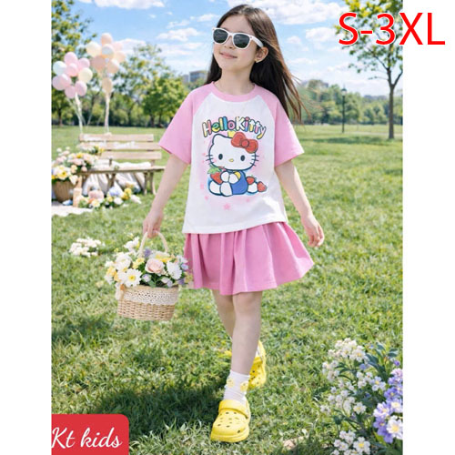 A509901 - Set váy xinh cho bé yêu thun cotton co giãn 4c in Kitty in cô bé chân váy xếp ly_Size S-3X