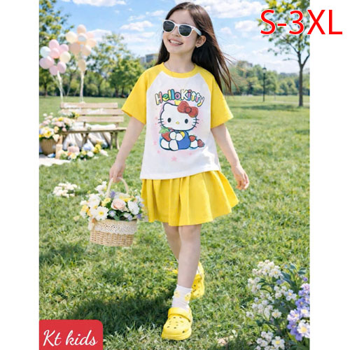 A509902 - Set váy xinh cho bé yêu thun cotton co giãn 4c in Kitty in cô bé chân váy xếp ly_Size S-3X