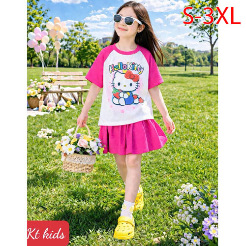 A509903 - Set váy xinh cho bé yêu thun cotton co giãn 4c in Kitty in cô bé chân váy xếp ly_Size S-3X