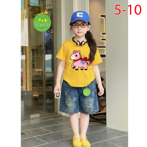 A509934 - Set jean bé gái áo thun contton in con ngựa mix cùng quần jean suông lửng_Size 5-10