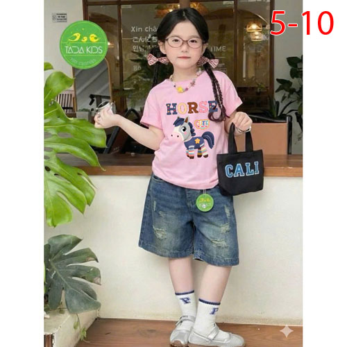 A509936 - Set jean bé gái áo thun contton in con ngựa mix cùng quần jean suông lửng_Size 5-10