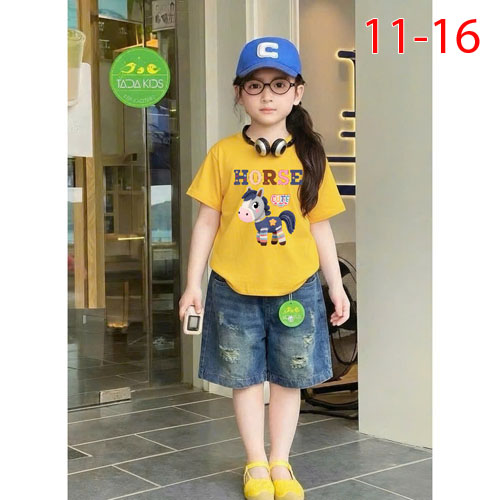 A509944 - Set jean bé gái áo thun contton in con ngựa mix cùng quần jean suông lửng_Size 11-16
