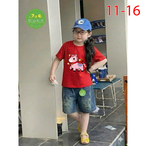 A509946 - Set jean bé gái áo thun contton in con ngựa mix cùng quần jean suông lửng_Size 11-16