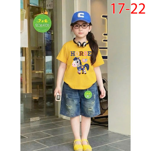 A509962 - Set jean bé gái áo thun contton in con ngựa mix cùng quần jean suông lửng_Size 17-22