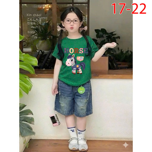 A509966 - Set jean bé gái áo thun contton in con ngựa mix cùng quần jean suông lửng_Size 17-22