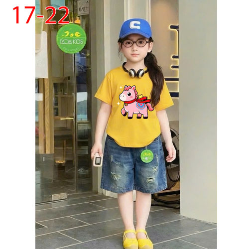A509971 - Set jean bé gái áo thun contton in con ngựa mix cùng quần jean suông lửng_Size 17-22
