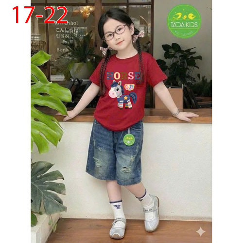 A509977 - Set jean bé gái áo thun contton in con ngựa mix cùng quần jean suông lửng_Size 17-22