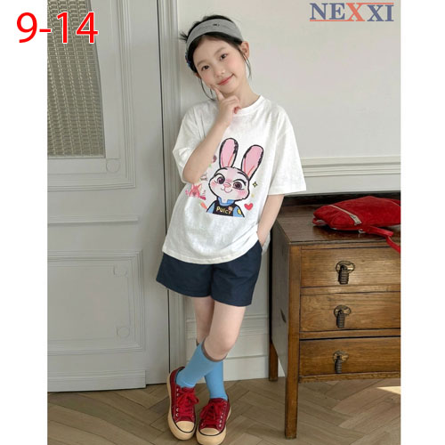 A509982 - Nexxi set diện hè siêu xinh áo thun cotton in thỏ quần sọt vải gió nhăn thoáng mát_Size 9-