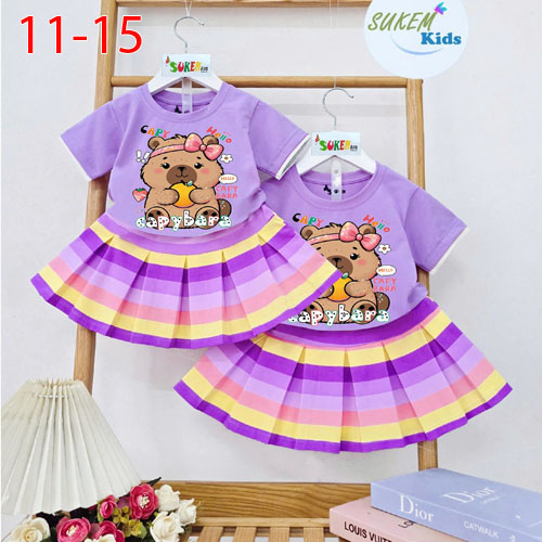 A509990 - Set váy áo thun ép hình siêu cute viền lé sọc cầu vồng chân váy xếp ly sọc cầu vồng_Size 1