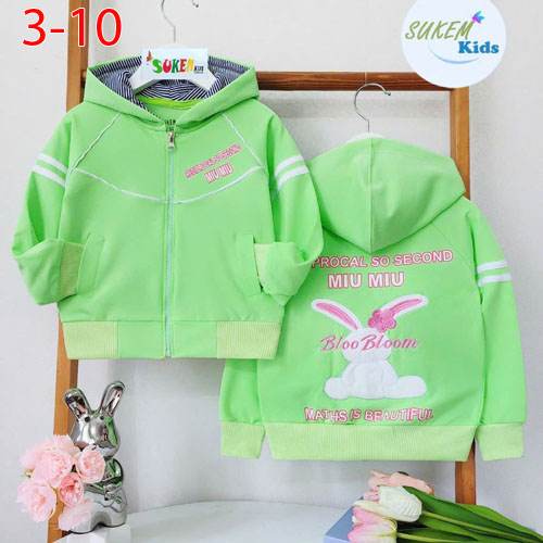 A510023 - (1/5)Áo khoác thêu đắp thỏ bông xù quá xinh với nón phối vải vải da cá coton_Size 3-10