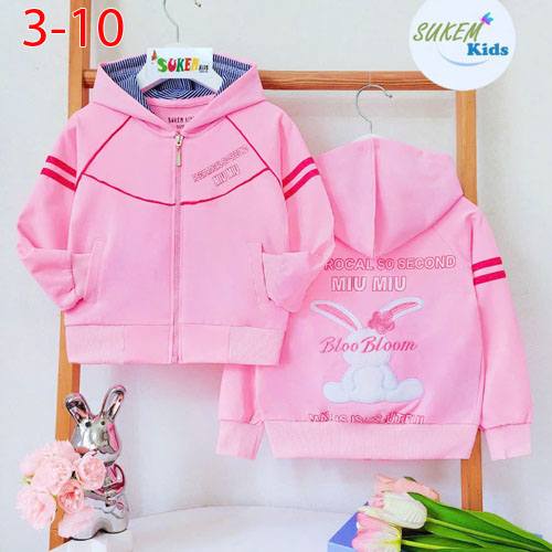 A510024 - (1/5)Áo khoác thêu đắp thỏ bông xù quá xinh với nón phối vải vải da cá coton_Size 3-10