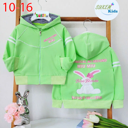 A510026 - (1/5)Áo khoác thêu đắp thỏ bông xù quá xinh với nón phối vải vải da cá coton_Size 10-16