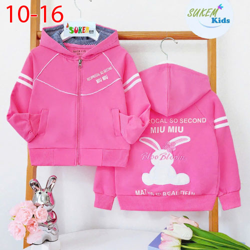 A510027 - (1/5)Áo khoác thêu đắp thỏ bông xù quá xinh với nón phối vải vải da cá coton_Size 10-16
