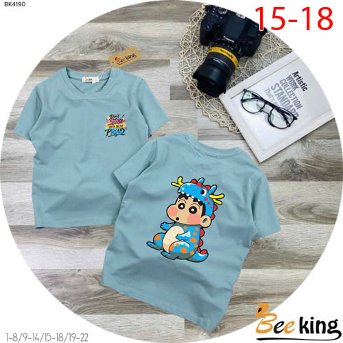 A510083 - Áo bé trai khủng long cậu bé shin thun cotton 4c_Size 15-18