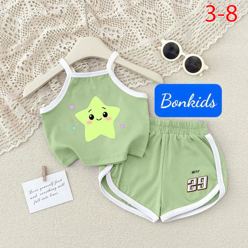 A510124 - Bộ dây cho bé gái diện hè chất thun cotton 4c_Size 3-8