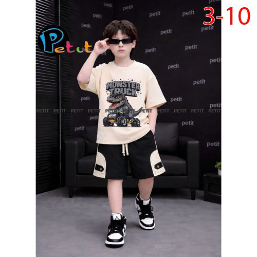 A510147 - Set bé trai phong cách thể thao năng động chất thun cotton 4c in khủng long in sóc_Size 3-