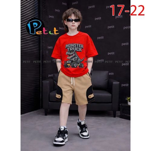 A510183 - Set bé trai phong cách thể thao năng động chất thun cotton 4c in khủng long in sóc_Size 17