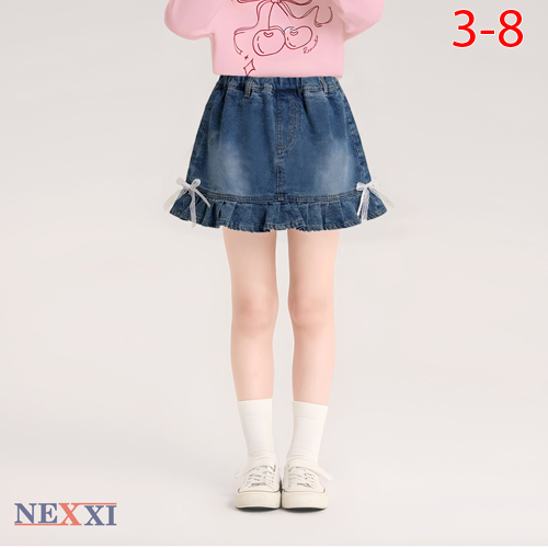 A510194 - (5/5)Nexxi chân váy jean bé gái chân váy lai xếp ly xòe (có chip) lưng thun, đính nơ siêu