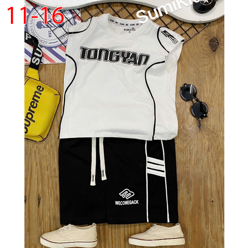 A510224 - Bộ thun phong cách năng động cho bé trai tay sát nách chườm vai ko bo tay vai in chữ_Size