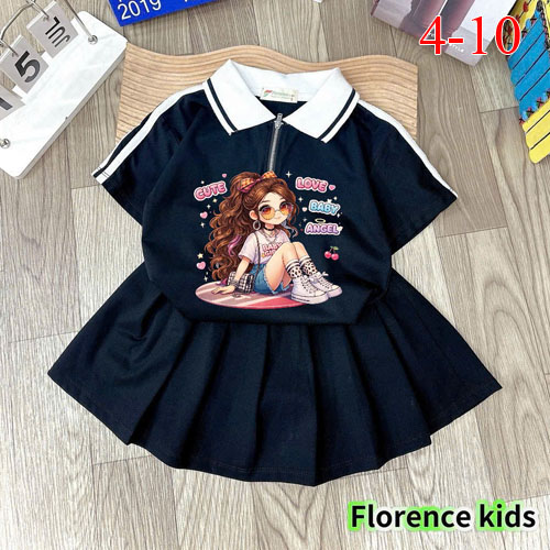A510260 - Set bé gái áo may bằng chất thun cotton 4c chân váy xếp ly kèm chip trong in Kitty in con