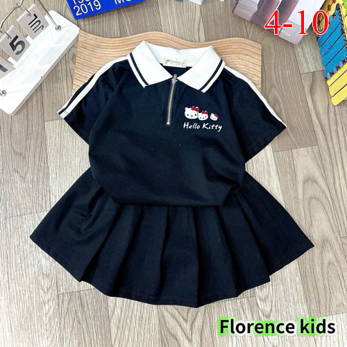 A510267 - Set bé gái áo may bằng chất thun cotton 4c chân váy xếp ly kèm chip trong in Kitty in con