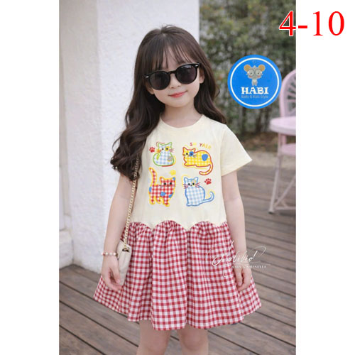 A510372 - Đầm thun bé gái đáng iu cho các nàng bánh bèo thun cotton 4c thân dưới sọc carô_Size 4-10