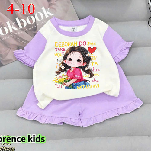 A510382 - Bộ short lai bèo dễ thương cho bé gái thun cotton 4c hình in chuyển nhiệt in cô bé_Size 4-