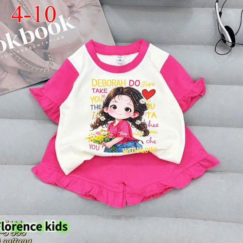 A510384 - Bộ short lai bèo dễ thương cho bé gái thun cotton 4c hình in chuyển nhiệt in cô bé_Size 4-