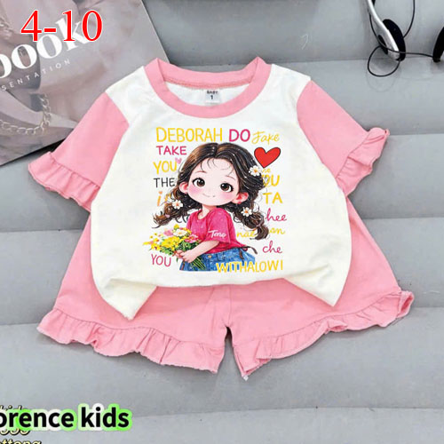 A510385 - Bộ short lai bèo dễ thương cho bé gái thun cotton 4c hình in chuyển nhiệt in cô bé_Size 4-