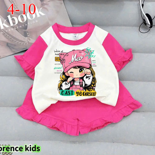 A510386 - Bộ short lai bèo dễ thương cho bé gái thun cotton 4c hình in chuyển nhiệt in cô bé_Size 4-