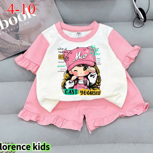 A510387 - Bộ short lai bèo dễ thương cho bé gái thun cotton 4c hình in chuyển nhiệt in cô bé_Size 4-