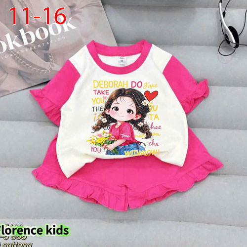 A510391 - Bộ short lai bèo dễ thương cho bé gái thun cotton 4c hình in chuyển nhiệt in cô bé_Size 11