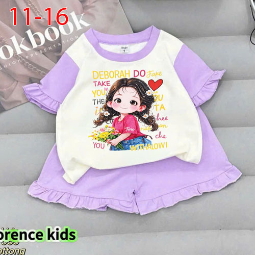A510393 - Bộ short lai bèo dễ thương cho bé gái thun cotton 4c hình in chuyển nhiệt in cô bé_Size 11