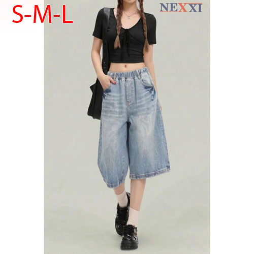 A501347 - Nexxi quần jean lửng Trend 2026 quần lửng ngố (qua gối) form rộng wash màu lưng thun phối