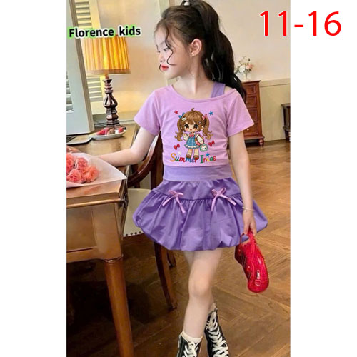 A510402 - Set váy dập ly ren cực xinh cho bé áo chất thun coton 4c in cô bé chân váy bí kèm chip tro