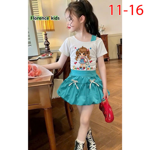 A510403 - Set váy dập ly ren cực xinh cho bé áo chất thun coton 4c in cô bé chân váy bí kèm chip tro
