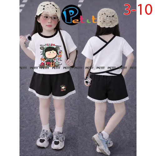 A510410 - Set bé gái áo croptop phối quần đùi áo dây chéo phía sau in Kitty in cô bé quần đùi phối v