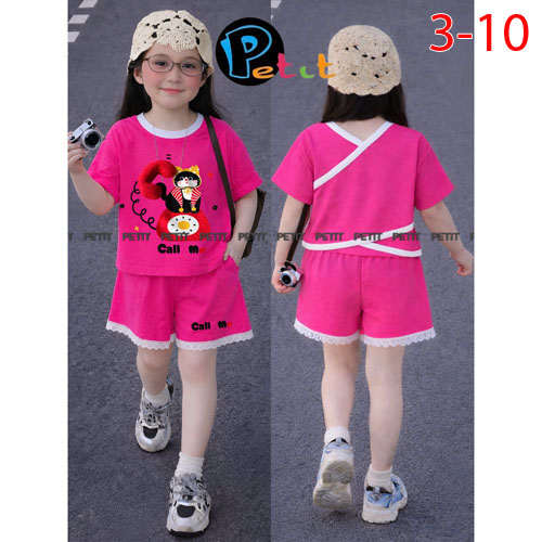 A510413 - Set bé gái áo croptop phối quần đùi áo dây chéo phía sau in Kitty in cô bé quần đùi phối v