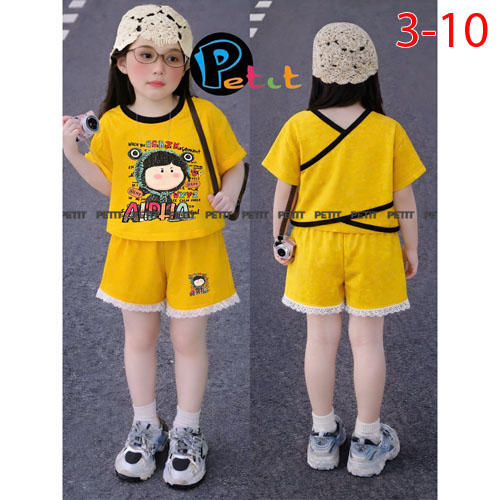 A510417 - Set bé gái áo croptop phối quần đùi áo dây chéo phía sau in Kitty in cô bé quần đùi phối v
