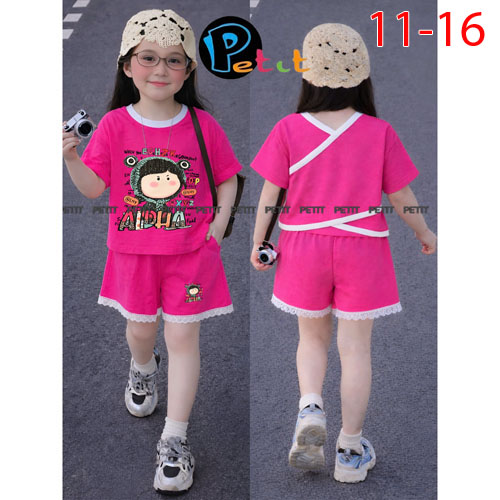 A510422 - Set bé gái áo croptop phối quần đùi áo dây chéo phía sau in Kitty in cô bé quần đùi phối v