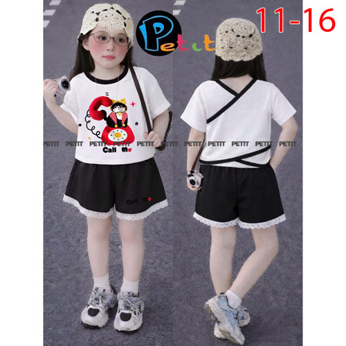 A510431 - Set bé gái áo croptop phối quần đùi áo dây chéo phía sau in Kitty in cô bé quần đùi phối v