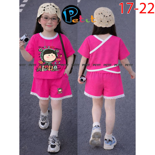 A510434 - Set bé gái áo croptop phối quần đùi áo dây chéo phía sau in Kitty in cô bé quần đùi phối v