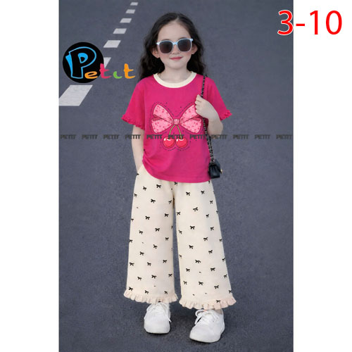 A510448 - (5/5)Set bé gái áo tay bèo nhẹ nhàng phối quần ống suông in nơ chất thun cotton 4C_Size 3-