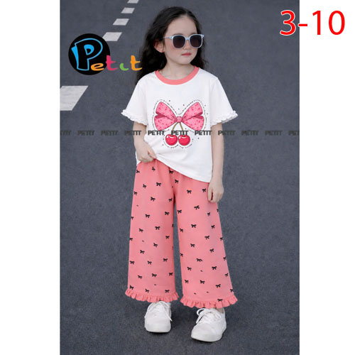 A510450 - (5/5)Set bé gái áo tay bèo nhẹ nhàng phối quần ống suông in nơ chất thun cotton 4C_Size 3-