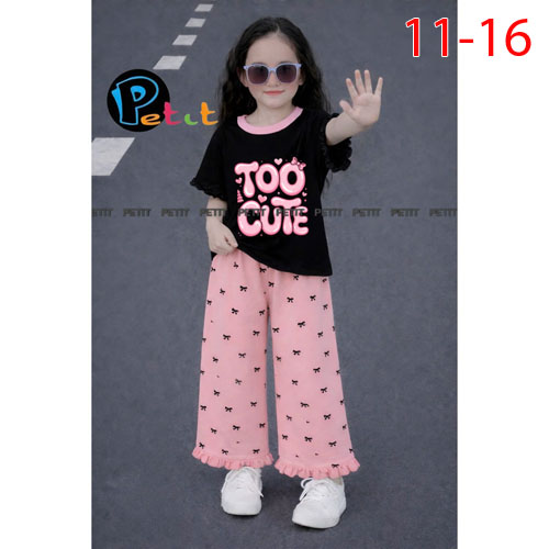 A510461 - (5/5)Set bé gái áo tay bèo nhẹ nhàng phối quần ống suông in nơ chất thun cotton 4C_Size 11