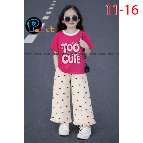 A510462 - (5/5)Set bé gái áo tay bèo nhẹ nhàng phối quần ống suông in nơ chất thun cotton 4C_Size 11
